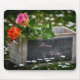 Rosa rojo y naranja en una caja de madera en un campo de mareas Mensaje personalizado en el lado de la pizarra