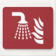 Aplicador de niebla de agua e icono de llama sobre fondo rojo.
