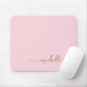 Alfombrilla de ratón con monograma dorado y nombre personalizado en rosa pastel con estilo minimalista simple y letra script. Estos diseños presentan su primer nombre en una hermosa tipografía de letra manuscrita con florituras en color dorado sobre un fondo de color rosa pastel o rosa claro. Fácil de personalizar. Un regalo femenino y elegante ideal para cumpleaños, día de la madre, despedida de soltera, cumpleaños número 16 y es para la chica que ama cosas únicas y minimalistas con estilo.