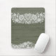 Alfombrilla De Ratón Sage Green Rustic Wood & White Lace Lacy Farmhouse
