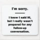 Por el amante del sarcasmo en todos nosotros. Echa un vistazo a este ingenioso diseño de "I Know I Said Hi, pero en realidad no estaba preparado para ninguna Conversación de Seguimiento" en prendas de vestir y regalos.