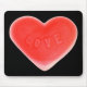 Diseño elegante con un corazón de caramelos chicle con "amor" escrito en él en tonos rojos y rosas sobre un fondo negro. Mousepad con un diseño de personalizable para que puedas personalizar con tu propio texto, fotos e ideas. Creado usando una fotografía original y técnicas digitales de Jess Perry.