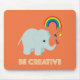 Un adorable tabique de un elefante bebé siendo creativo pintando un arcoiris. Este mousepad está diseñado con amor por Eggplant y Purple.