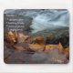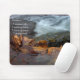 Fotografía de un arroyo con hojas de arce y roble en primer plano, mostrada en un Mousepad de calidad. Las siguientes palabras se muestran en el tabique, "La serenidad es... color de otoño, brochas balbuceadoras, aromas de bosques, pájaros cantantes".