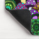 Un mousepad con las setas psicodélicas coloridas rodeadas por Paisley verde y las mandalas verdes.