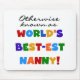 Las mejores camisetas de la niñera, sudaderas con capucha, tazas, tarjetas, pegatinas, recuerdos de la niñera, imanes, y otra ropa y regalos de la niñera con el texto que lee "conocido de otra manera como niñera del Mejor-est del mundo!". ¡Si usted llama a su abuela "niñera" éstos están para ella!