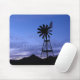 Una silueta de un molino de viento cuando el sol está proyectando un resplandor azulado en Queen Creek, Arizona. Foto de Ruth Jolly. Vea también productos coincidentes.