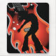 Mousepad/mousemat negros frescos con una silueta de un baile del cantante de punk rock en un fondo anaranjado maravilloso de la guitarra de la llama - @ www.vectorportal.com. ¡Un regalo impresionante de moda para los adolescentes, los amantes de la música y cualquier persona MARAVILLOSOS!!
