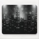 Elegante y elegante almohadilla de ratón en negro y una gran paleta de tonos grises en un brillante gradiente con aspecto metálico en un horizonte de ciudad retro.