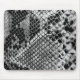 Huella divertida de piel de serpiente en blanco y negro. Esta es una foto de clausura donde casi se puede ver el 3D de las escalas. Pero el artículo no tendrá ninguna textura real.