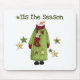 Un viejo país se ve como un hombre de nieve con un vestido verde y rojo, panecillos matutinos y una bufanda, estrellas verdes y doradas, y un texto que dice "Esta temporada" en camisetas, tarjetas, tazas, imanes, bolsos de té y más sobre el tema de los hombres de nieve.