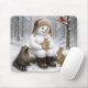 Alfombrilla De Ratón Snowman In Winter Woods With Animal Friends
