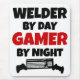 Este diseño de texto incluye la frase de moda "Welder by Day Gamer by Night" y es perfecto para cualquier soldador que ame jugar.