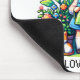 Cuto, mousepad para cualquier chica que ame las plantas. Gráfica ai personalizada en un estilo de videojuego de 8 bits. Chica con una lata de agua rodeada de muchas plantas.
