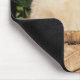 Esta divertida almohadilla de ratón canino cuenta con un alegre cachorro dorado Golden Retriever sentado dentro de un viejo barril de madera con flores violetas en el fondo.