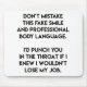 NewParkLane - Funny Mousepad, con una cita sarcástica: "No confundan esta milla falsa con el lenguaje masculino profesional. Te golpearía en la garganta si supiera que no perdería mi trabajo', una tipografía moderna. Proteja esta colección para ver los elementos coincidentes. ¿Tienes deseos de diseño personal específicos? ¡Siéntete libre de contactarme!