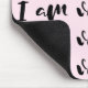" Estoy muy ocupado" en escritura gruesa sucia en un mousepad rosa claro