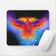 Fiery phoenix sobrevolando el espacio en una nube de nebulosa azul y púrpura. El brillante grupo de estrellas que corona la mítica cabeza de un pájaro forma la constelación fénix. ♡ Idyllfire