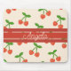 Un divertido patrón de repetición de cerezas rojas en forma de corazón con hojas verdes sobre un fondo suave de textura, aportando encanto vintage y un toque de dulzura a cualquier estética retro.