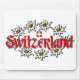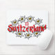 Nuestro mousepad traerá una sonrisa como usted trabaja con el tipo rojo alegre que indica "Suiza" más la bandera suiza rodeada por los edelweiss