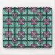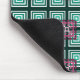 Esta almohadilla del ratón tiene un diseño art deco de cuadrados concéntricos superpuestos en verde azulado y rosa.