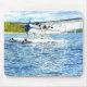 En el área del puerto de Sydney de Australia, un piloto del placer-vuelo llena el depósito de gas de su floatplane del castor de Havilland en la disposición para la salida escénica siguiente. De watercolour original de Christine el Hudson.