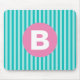 Alfombrilla De Ratón Teal Blue Vertical Striped Pink Circle Monogram