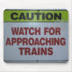 Vio esta muestra en una estación de tren. Qué pensé era así que divertido era eso, "mira realmente hacia fuera para acercarse entrena", para que sea prudente, yo tendría que dar vuelta alrededor pues el tren venía de detrás yo.
