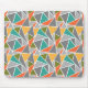 Esta almohadilla de ratón tiene un diseño moderno de triángulos de mediados de siglo, que hace que el suelo de terrazo sea gris, turquesa, naranja, dorado y verde.