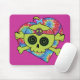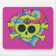 Calavera verde suave y huesos cruzados con una banda de señas de paz y puesta sobre un corazón de tinte de corbata.