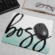 Muéstrales a todos los que son jefes — ¡o simplemente recuérdate! — con nuestra tipografía linda y moderna almohadilla para ratón. El diseño es elegante, con un fondo acuático en color verde pálido y un "jefe" con letras de marcadores de estilo negro a mano. ¡Hace un regalo divertido para promociones, nuevos trabajos y graduaciones!