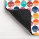 Esta almohadilla de ratón tiene un diseño moderno de mediados de siglo de semicírculos rayados y de semicírculos sólidos sobre un campo de blanco.