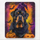 Alfombrilla De Ratón Tonto Rottweiler Perro Halloween Bruja Y Calabaza