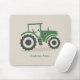 Una almohadilla de ratón beige claro con un ilustracion de un tractor de granja verde y gris de estilo personalizado y texto de personalizable debajo! ¡Podría ser un regalo perfecto para un agricultor o un hombre de campo!