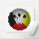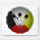 Este diseño de tres plumas se refleja en el círculo de los colores vivos.