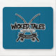 Equipo de pesca de Cuentos Malvados, este diseño presenta barras de pesca con texto, "Cuentos Pesqueros Pesqueros Pesqueros" California.