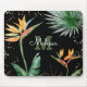 Bring a bit of that tropical vacation feeling to your workplace whenever you use this chic, modern custom monogram mousepad. Stunning, sophisticated, colorful, elegant watercolor birds of paradise flowers, faux gold glitter, and personalized calligraphy script with a bold monogram initial, overlay a dramatic black background. Personalize with your name and monogram. Makes a stylish statement every time you use it. A great pick me up for your daily routine!