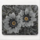 A pair of delicate daisies take centre stage in this striking selective‑colour photograph. The petals and surrounding foliage are rendered in smooth grayscale, creating a calm, monochrome backdrop. At the heart of each bloom, vivid yellow‑orange centres burst with warmth and detail, forming a dramatic contrast that immediately draws the eye. Fine water droplets rest on the petals and leaves, adding texture and a sense of freshness. The combination of soft tones and vibrant colour accents gives the artwork a modern, elegant feel that suits home décor, nature lovers, and contemporary art collections.