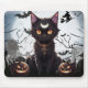Alfombrilla De Ratón Un gato negro espeluznante con luna.