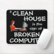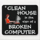 Divertido mousepad para Zazzlers y otros expertos en informática por igual. Presenta obras de arte de una mujer en un ordenador. El texto dice: "una casa limpia es el signo de una computadora quebrada" **Gráfico usado con permiso de la Nova Development Corporation**