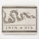 La caricatura de la serpiente "Únete o muere", un poderoso símbolo de unidad, fue creada por Benjamin Franklin en 1754. Surgió en un momento de creciente tensión entre las colonias británicas en Norteamérica y los franceses y sus aliados nativos americanos. - La guerra franco-india se cernía, y Franklin, delegado en el Congreso de Albany, reconoció la necesidad de unidad colonial para contrarrestar eficazmente la amenaza combinada. Vio la naturaleza desunida de las colonias como una gran debilidad, que obstaculizaba su capacidad para montar una defensa coordinada. - Inspirándose en varias fuentes, incluyendo un proverbio francés e ilustraciones de historia natural, Franklin ideó la imagen "Únete o muere". La serpiente cortada, dividida en ocho segmentos que representaban las colonias, sirvió como una advertencia contundente. Transmitió el mensaje de que si las colonias permanecían divididas, serían vulnerables al ataque y finalmente perecer