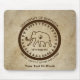 El sello oficial de la mítica Universidad de Beringia, fundado el 2000 a.C., con un fondo de cuero. Beringia es el nombre que se le da al puente terrestre Bering y a las zonas de Alaska y Siberia que lo rodean. El sello incluye un simple dibujo de una línea marrón de un mamut lúgubre (la mascota de la escuela), con texto que dice "Universidad de Beringia", "ESTD 20000 A.C." y el lema de las escuelas: "TREAD LIGERAMENTE SOBRE LA TIERRA". La imagen tiene un estilo primitivo -después de todo el colegio se estableció hace 22000 años, mucho antes de los materiales e impresoras modernos. Añade tu propio texto adicional. Los programas de la U de B en ecología ártica, manejo de la vida silvestre e ingeniería de microhojas líticas son inigualables. ¡Vayan mamut!