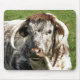 Diseño fotográfico de una vaca Longhorn inglesa de raza marrón y blanca de ganado vacuno.