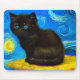Almohadilla del ratón con un gato Van Gogh al estilo de la Noche Starry! Un gatito negro mullido se perfila sobre una mesa contra un cielo azul nocturno y una luna amarilla. ¡Un regalo perfecto para los amantes del gato y los coleccionistas holandeses de arte!