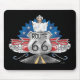 Mousepad negro que ofrece un diseño de la ruta 66.