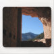 Vista de montaña desde la ventana de las viviendas del acantilado en Manitou Springs, Colorado