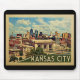 Diseño de Kansas City Missouri al estilo Viaje Vintage con vistas al horizonte de la ciudad que incluye el edificio de la capital.