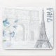 Vintage hermoso París con la torre Eiffel y un manojo de calmar las flores azules.