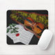 Alfombrilla De Ratón Violín y rosa rojo en fondo negro