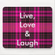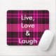 el mousepad de la tela escocesa de las rosas fuertes y del negro con vivo, ama y ríe en las letras blancas.